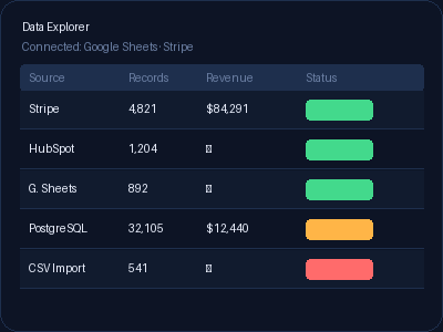 Upload your Excel or CSV file and ask questions in plain English. Claude reads your data, identifies patterns, flags anomalies, and explains what it's seeing — the same way a skilled analyst would, in seconds.